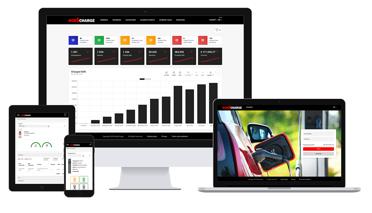 In almost all cases, manufacturers and/or installers give advice on which management platform is suitable for the customer. The customers register on that relevant management system with the result that the customers also become customers of this party. The customer has to deal with various parties for his charging solution(s). At Robo Charge you have the choice to let your customers remain your customers in a white-label platform. Even the invoicing comes from you as an installer.